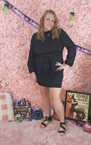 Black Long Sleeve Dress With Tie Detail In Front