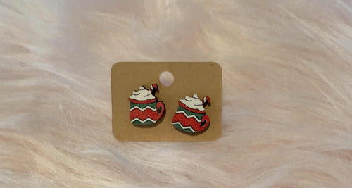 Mug ☕️ Studded Earrings With Red 🔴 & Green 🟢 Strips