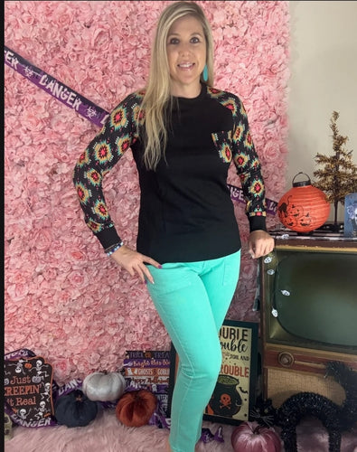 Black ⚫️ Aztec With Pink Teal 🟢 & Orange 🟠 Pattern