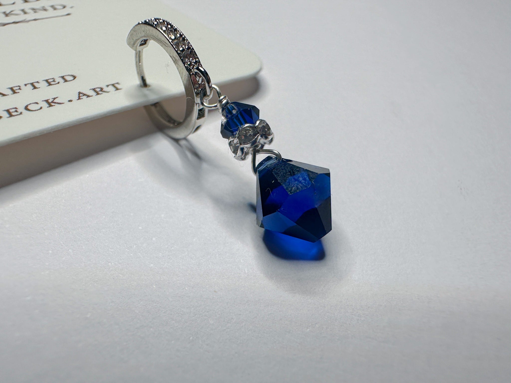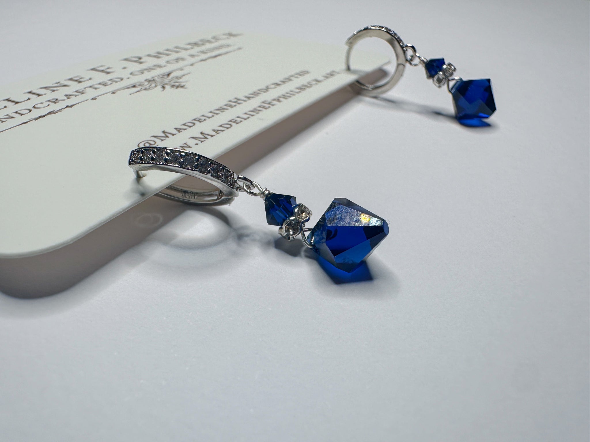 Deep sapphire Swarovski crystals on silver plated brass buggies