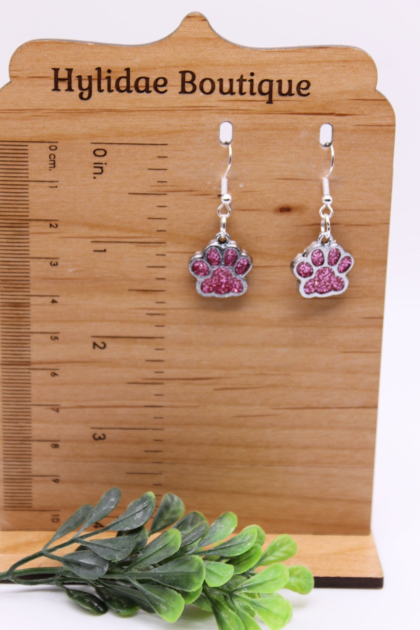 Pink Glitter Paw Prints || Dangle Earrings