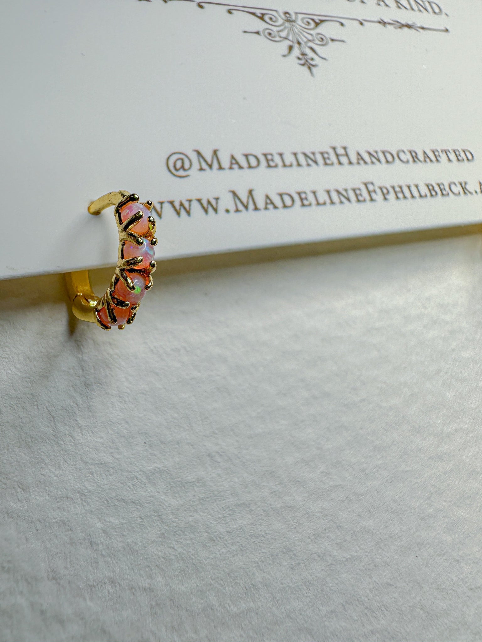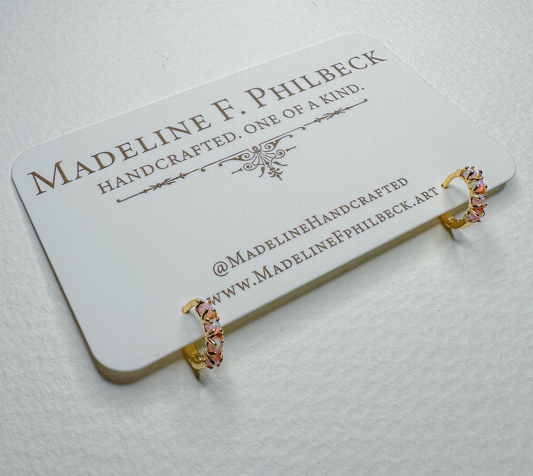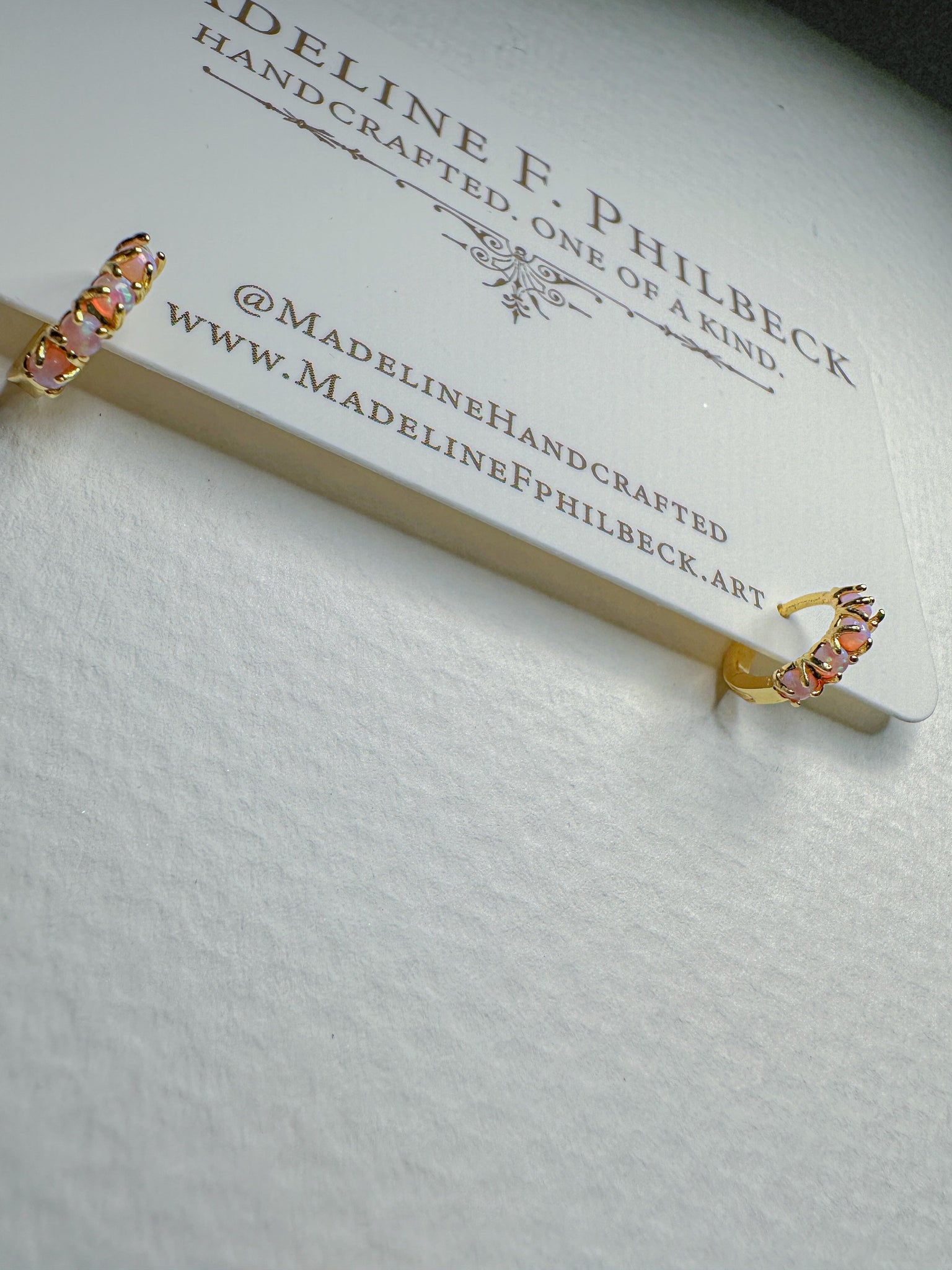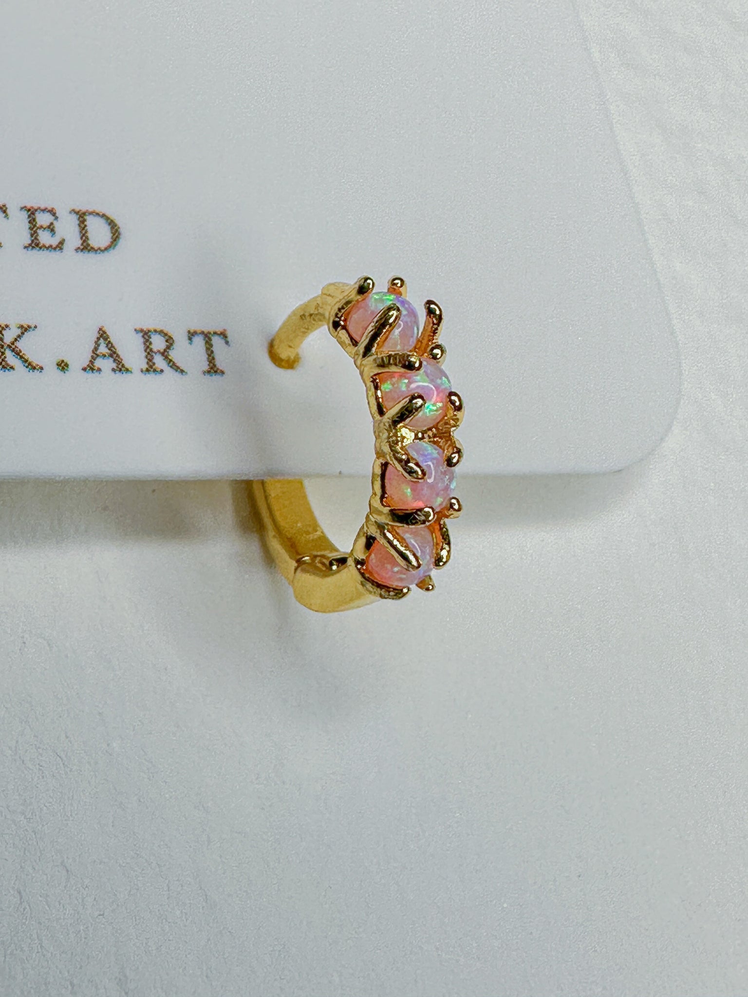 Beautiful pale pink opals on brass huggies