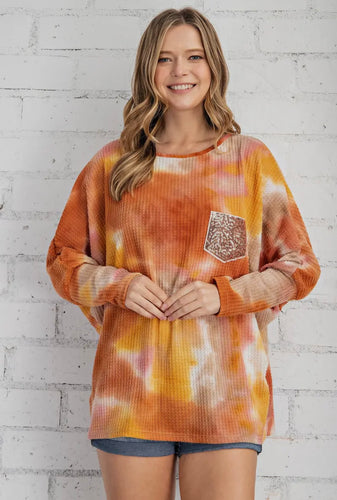 Orange/Yellow Tie Dye Blend Top With Glitter Pocket