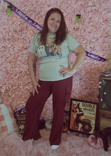 Mineral Washed Tee With Halloween Themed Nurse Across Front