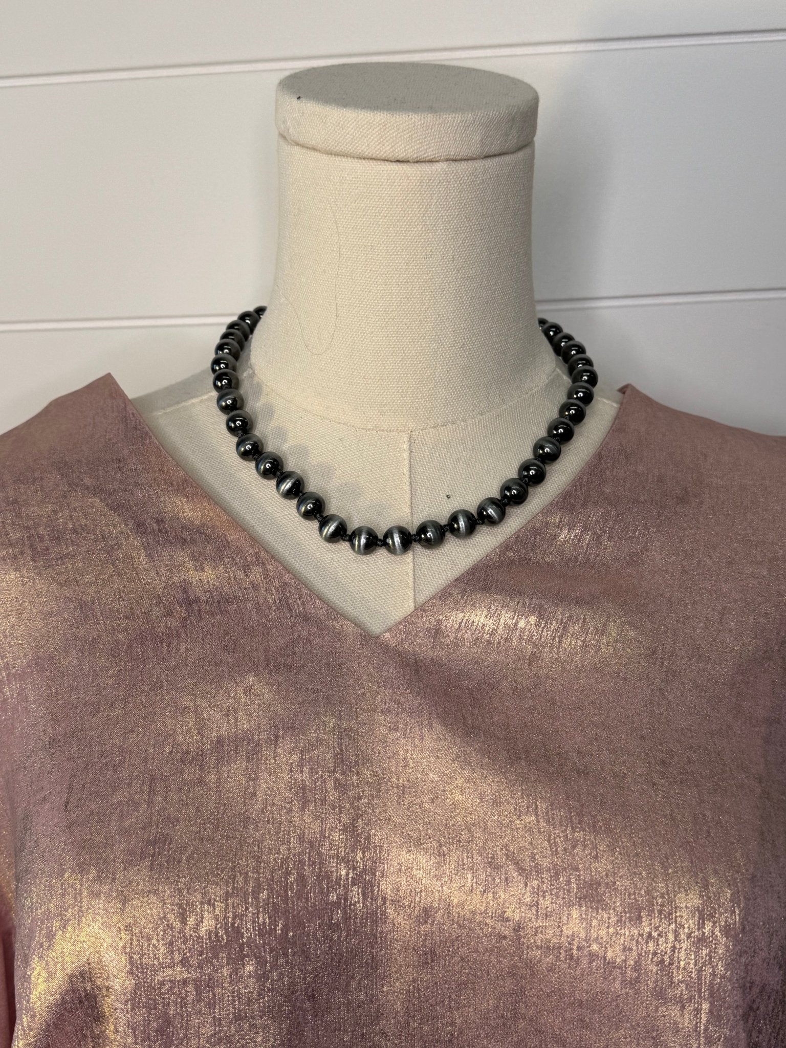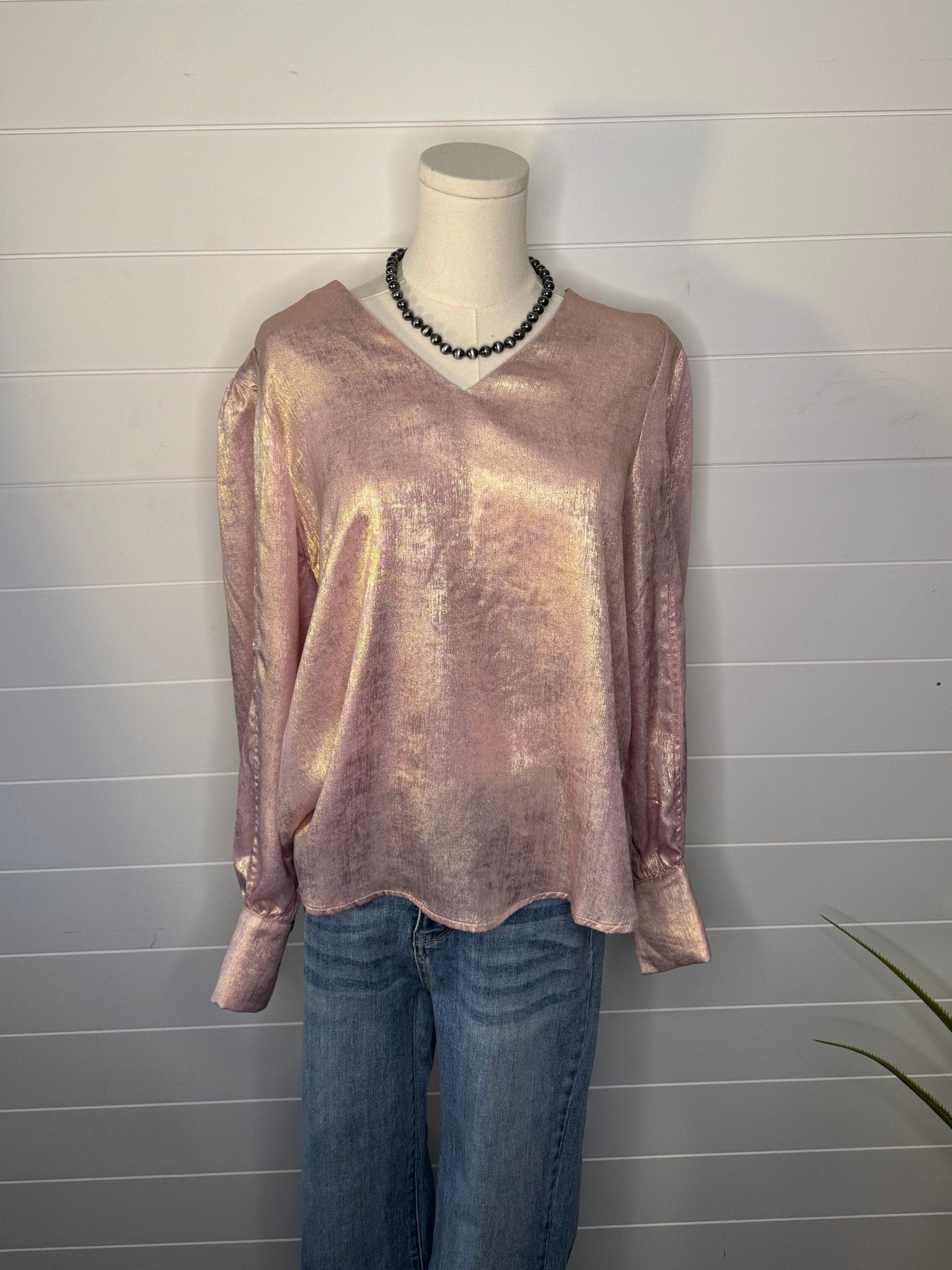 This blouse is made of a lightweight material and features a V-neck, puffed sleeves, and buttoned cuffs. It will add a touch of elegance to your outfit.