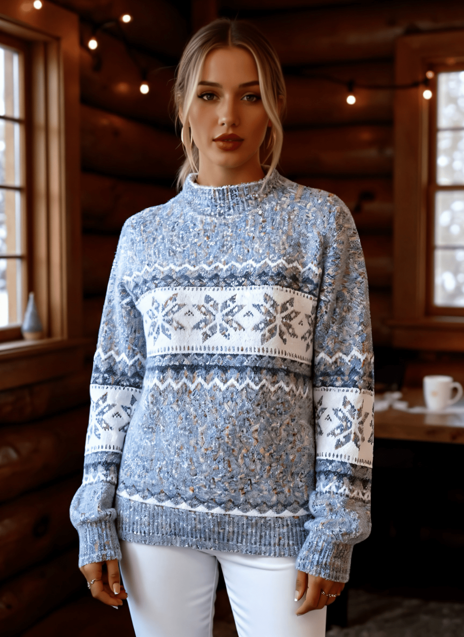 Get cozy this season with the Snowed In Knit Sweater — your new go-to for wintry, snowed-in days. Featuring a soft, heathered blue and white color palette with a classic fair isle snowflake pattern, this sweater radiates all the cozy cabin vibes.