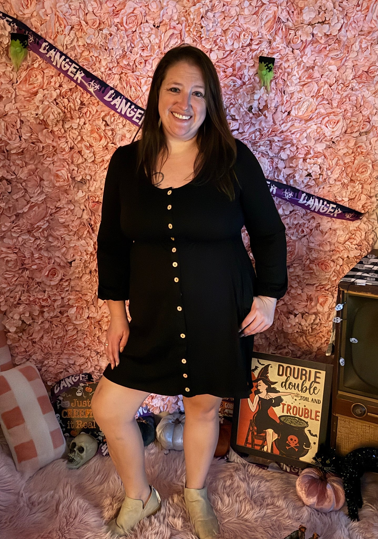 Black Long Sleeve Dress ๐ With Button Up Detail Down Center