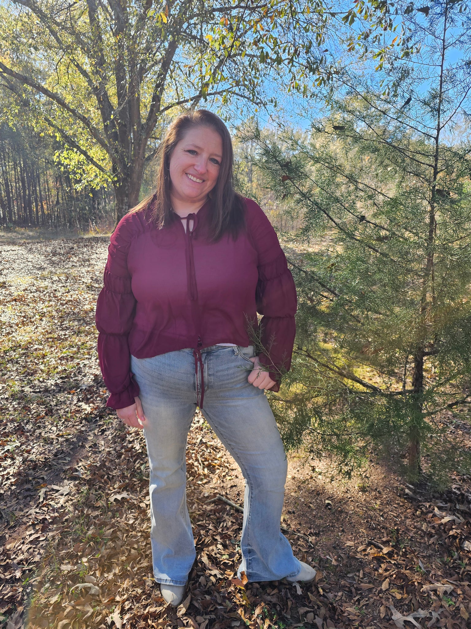 • Load image into Gallery viewer, Burgundy 🔴 Sheer Blouse