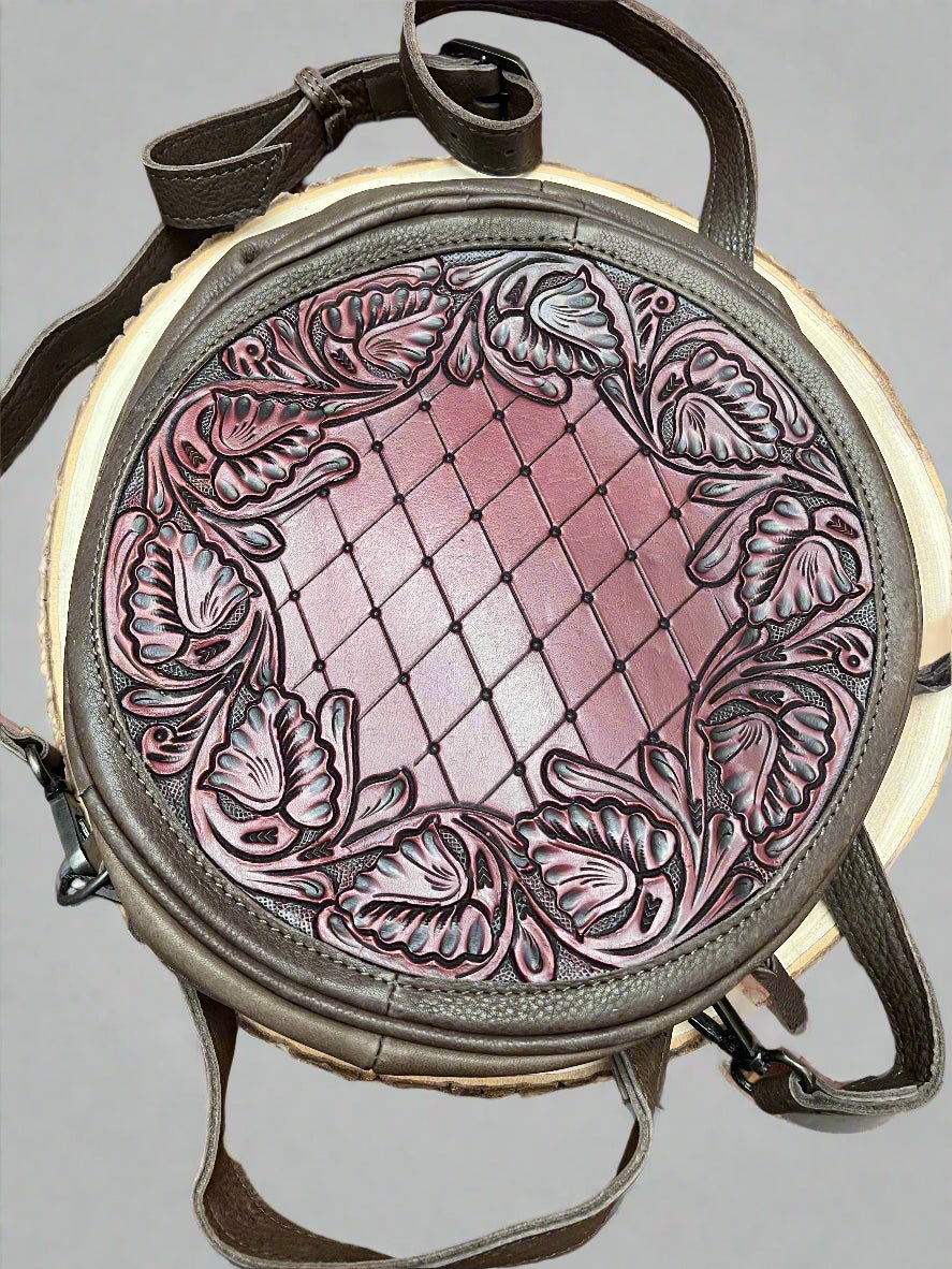 Detailed hand tooled, carved and painted vegetable tanned American Cowhide Leather exquisitely done by the finest craftsmen in the country. High quality Genuine Full Grain Leather. Soft and supple leather that ages beautifully as it wears. Adjustable genuine leather shoulder strap.