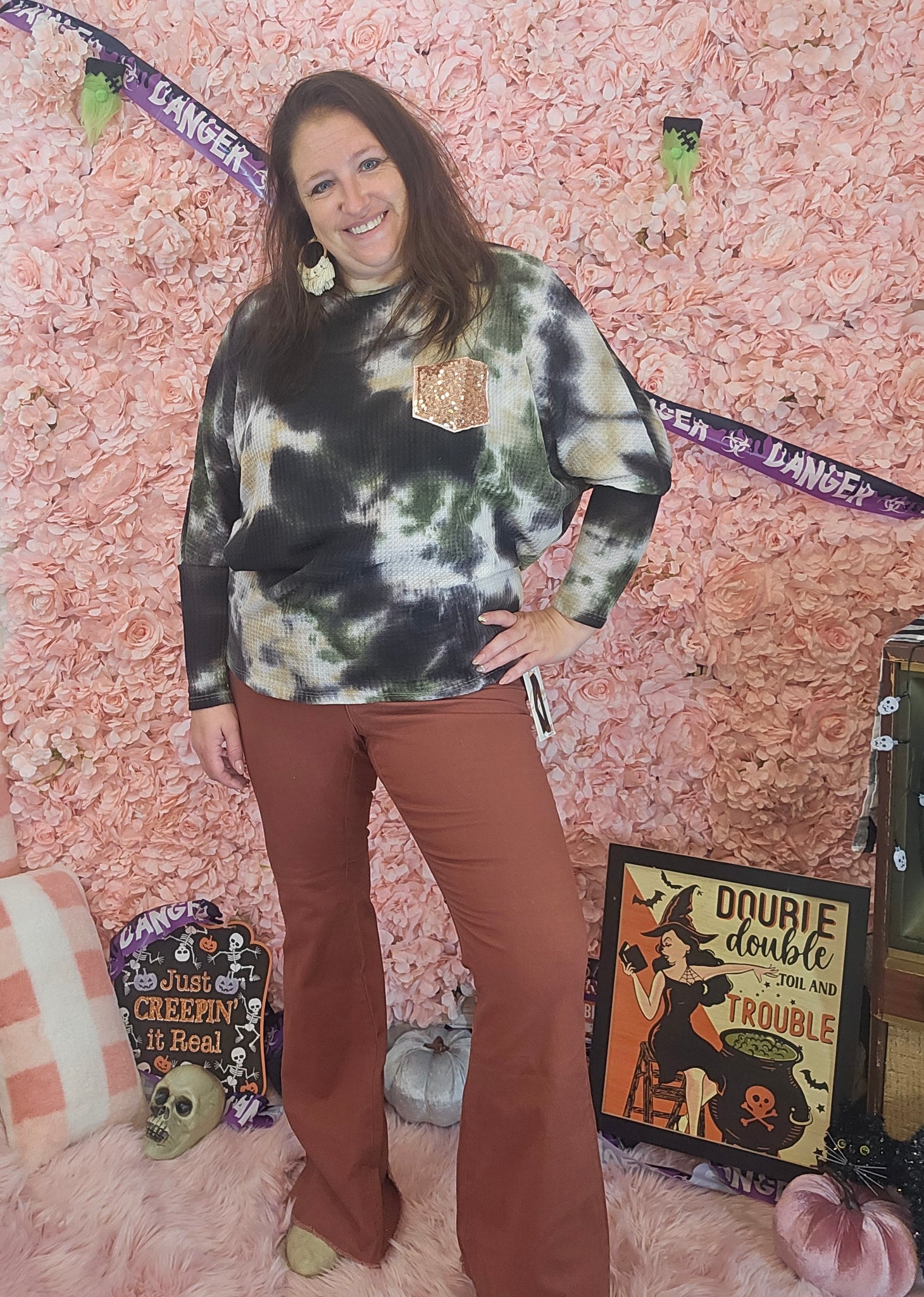 Green 🟢/Purple 🟣 Tie Dye Shirt With Glitter Pocket