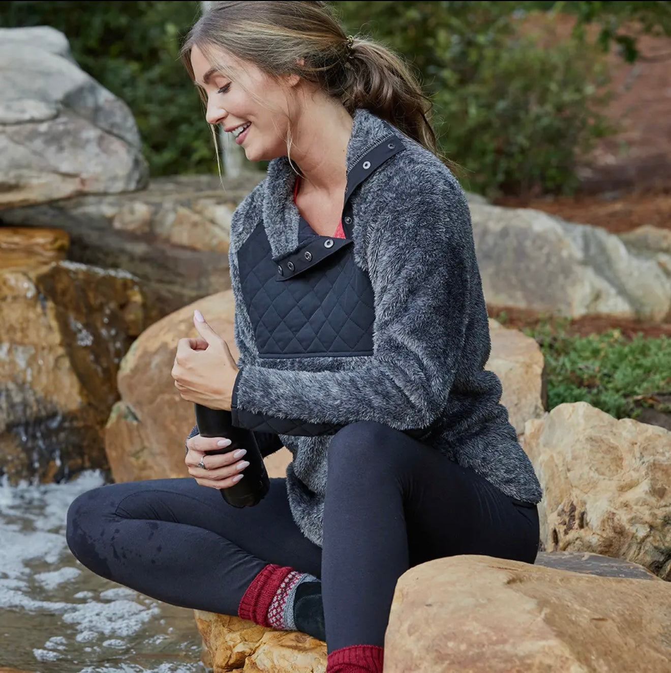 Black & Grey Quilted and fuzzy pullover.