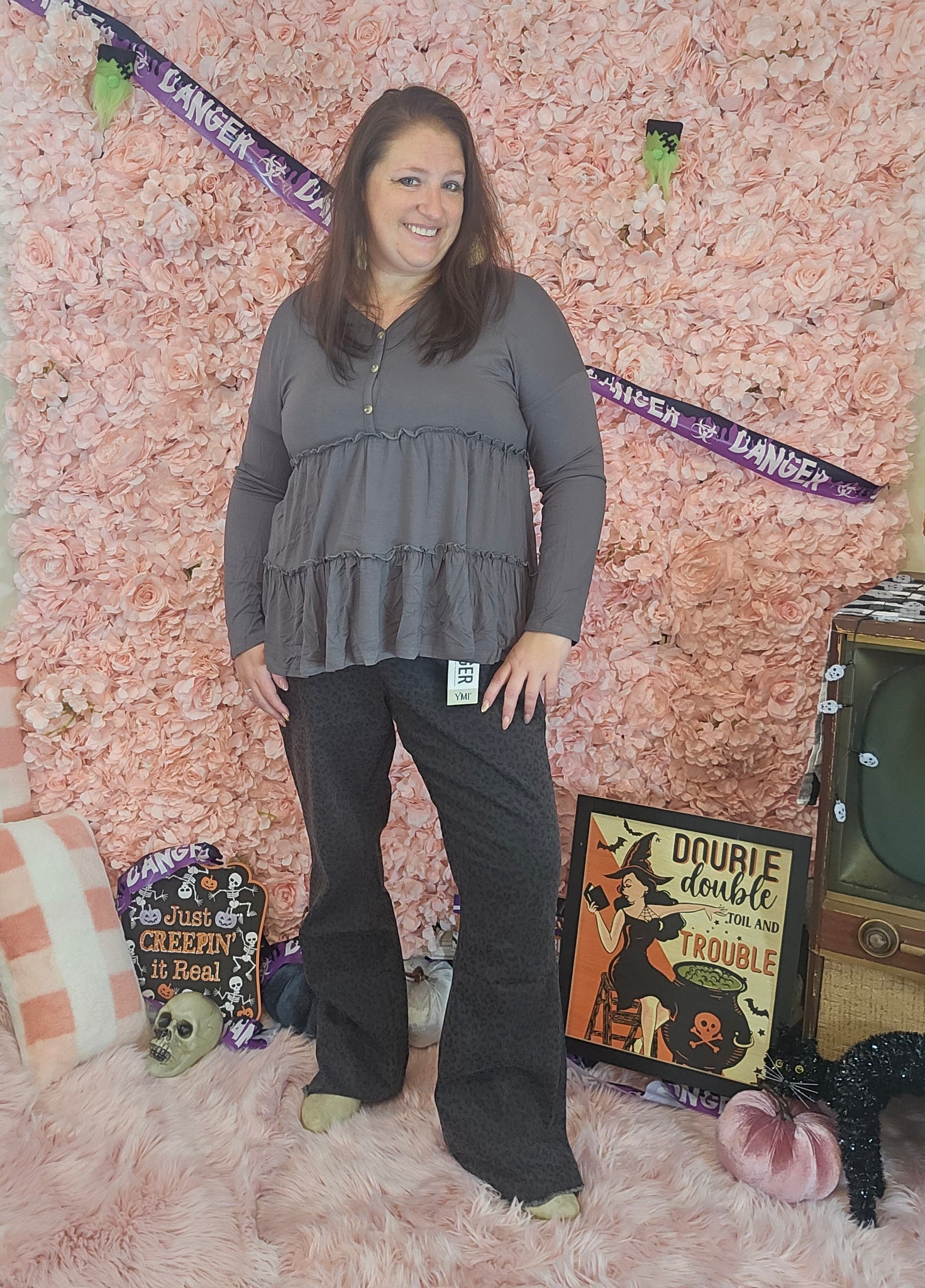 YMI Drawstring Waist Pants With Tiny Leopard Print Detail All Over.