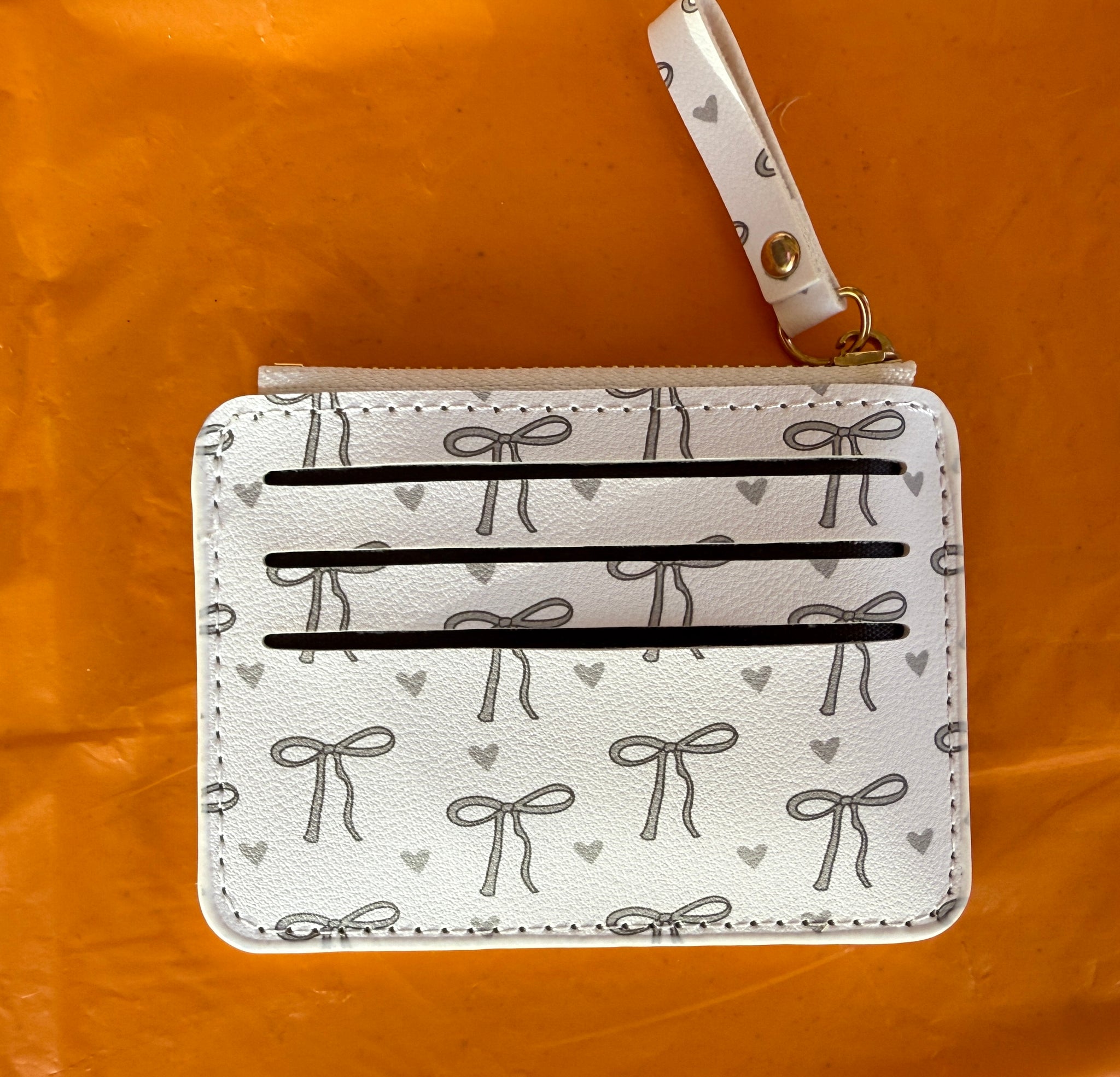 White With Grey Bows Card Holder